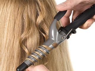 - Прогретую прядь намотайте на прибор. Его следует держать горизонтально.