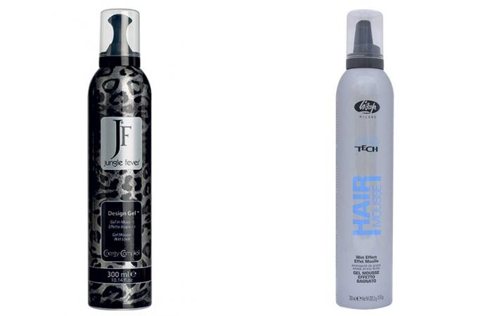 - Мусс (пенка). Оптимально подходит вьющимся локонам. За счет воздушной текстуры не склеивает пряди и позволяет получить быстрый эффект мокрых волос. После нанесения мусса сушить шевелюру нужно естественным способом, иначе она станет жесткой или превратится в пушистый одуванчик. Примеры средств: гель-мусс Design Gel серии STYLING & FINISHING от JUNGLE FEVER (около 1500 рублей), мусс-гель серии High Tech от Lisap (примерно 700 рублей) и др.