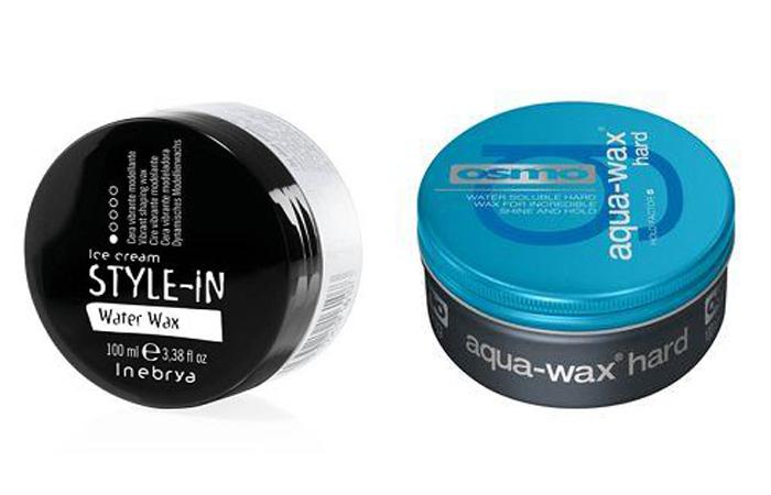 - Воск. Подходит для создания мокрого эффекта на кончиках прядей и на коротких локонах, в том числе мужских. Вьющуюся шевелюру может утяжелить. Для обработки всей длины волос следует брать гель с воском. Вязкая консистенция средства позволяет достичь желаемого эффекта максимально быстро. В этой категории есть, например, воск FINISH WATER WAX от INEBRYA (порядка 650–700 рублей), Aqua-Wax Hard бренда OSMO (примерно 1100 рублей) и др.