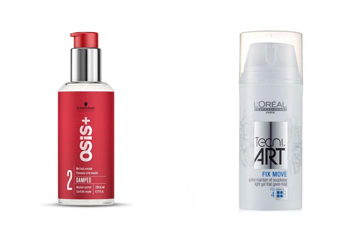 Есть и другие средства для моделирования мокрых волос. Например, флюид Schwarzkopf Osis+ Damped или эластичное желе L’oreal Tecni Аrt.