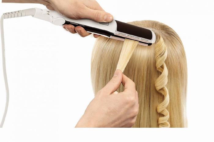 - Не торопясь, проведите прибором вниз, не задерживаясь на каком-либо участке. При правильном выполнении на выходе должен получиться четкий упругий завиток.