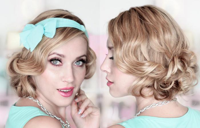 Интересно выглядит прическа, дополненная повязкой. Аксессуар в этом случае не только декорирует, но и фиксирует подобранные пряди. Пошаговая инструкция: