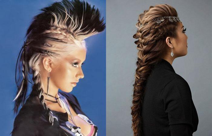 Укладку не обязательно делать кричащей. Иногда достаточно простого использования распушенной косички. Прическу умеренной дерзости часто используют знаменитости. С пышным плетением наподобие ирокеза часто дефилируют Селена Гомез, Кристина Агилера, Шакира, Рианна.
