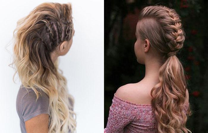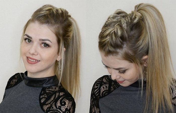 Вариант с хвостом пользуется повышенной популярностью. Выполнить частичное плетение проще. Хвост можно расположить на макушке или затылке. Допустимо сделать классический высокий конский хвост с начесом, а боковые пряди дополнить плетением. Больше интересных и оригинальных вариантов прически хвост с косой вы найдете у нас на сайте.