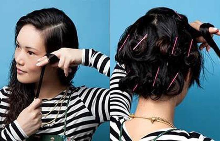 - Кудри расчешите, обработайте лаком. Способ подходит обладательницам недлинных прядей.