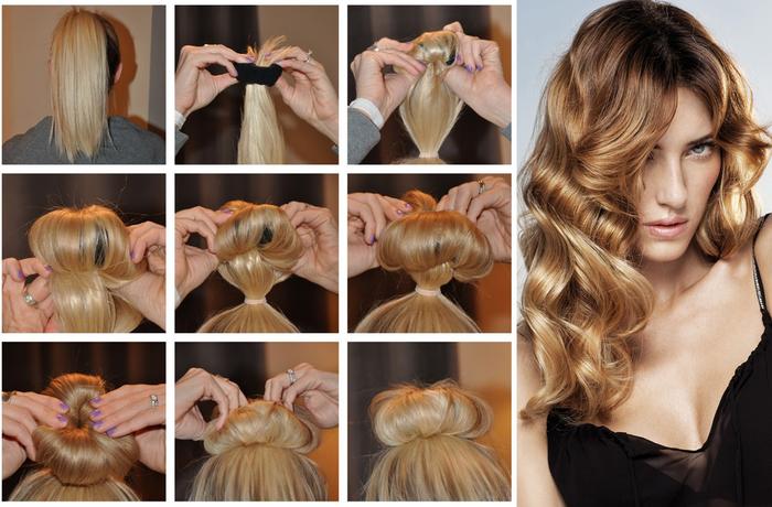 Еще один аксессуар — валик или резинку «бублик» — можно использовать не только для создания прически, но и для формирования больших локонов: