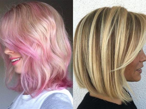 Блондинки могут рискнуть и покрасить локоны в цвет «мокрый асфальт». Как вариант, попробуйте бледно-розовый цвет — он сейчас в моде.
