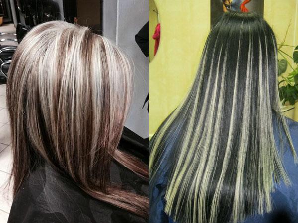 Как уже говорилось, «зебра» лучше всего будет смотреться на прямых волосах средней длины или длинных локонах.