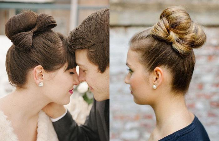 Обратите внимание, прическа подойдет студенткам и деловым женщинам. В зависимости от ситуации можно сделать классический, сдержанный и деловой пучок. Добавить образу кокетства, игривости помогут симметричные шишки. А вот волнистый пучок, украшенный диадемой и цветами, часто делают на свадьбу.