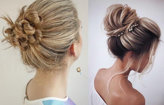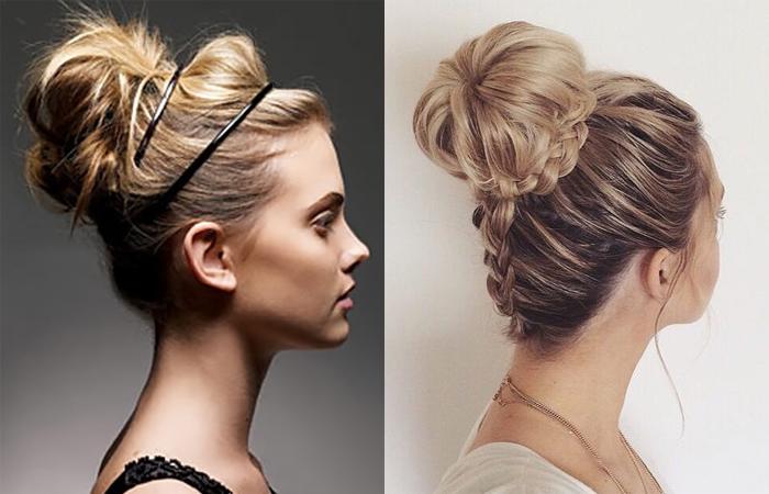 - Обладателям резких черт, короткой шеи рекомендуется объемный пучок, расположенный высоко.