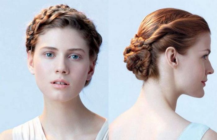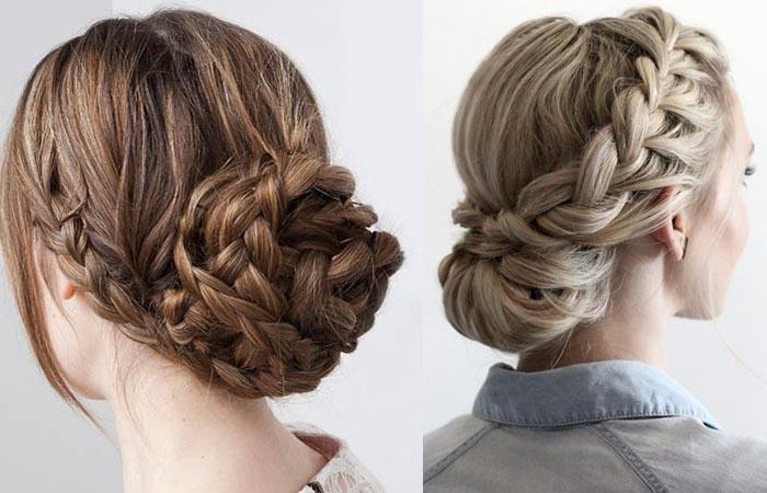 - Обладателям вытянутого, узкого лица рекомендуется создать объем по бокам. Элемент размещают на затылке. Конструкции с плетением подходят наилучшим образом.