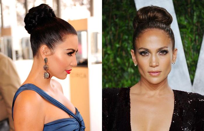С шишкой из волос часто появляются знаменитости. Прическа проста, элегантна, практична. Плетеный пучок органично дополняет разные образы, используется в обычной жизни, для торжественных мероприятий. Укладку часто демонстрируют Ким Кардашьян, Бьонсе, Дженифер Лопес.