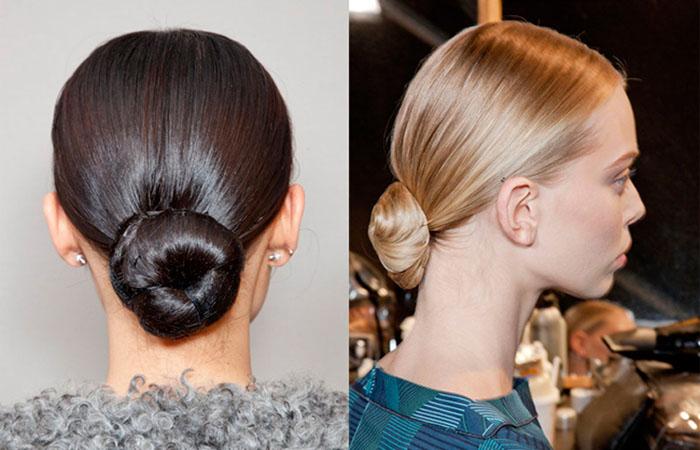 Внимание! Популярны объемные бублики, накладные пряди. Прическа получается пышной, но реально оставить шевелюре гладкую структуру. Учитывая это, легче работать со слегка вьющимися прядями.