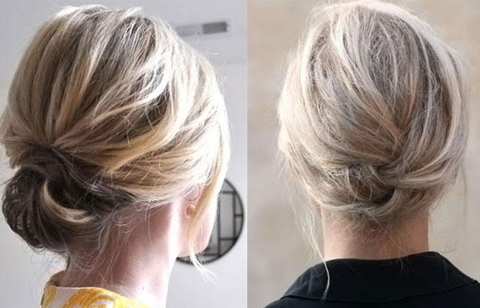 Короткие пряди легче всего собрать на затылке. Вариант с подобным расположением подойдет всем типажам внешности. Низкую укладку получится сделать самостоятельно при достаточной длине прядей, но для выполнения прически для торжественного случая рекомендуется обратиться к парикмахеру.