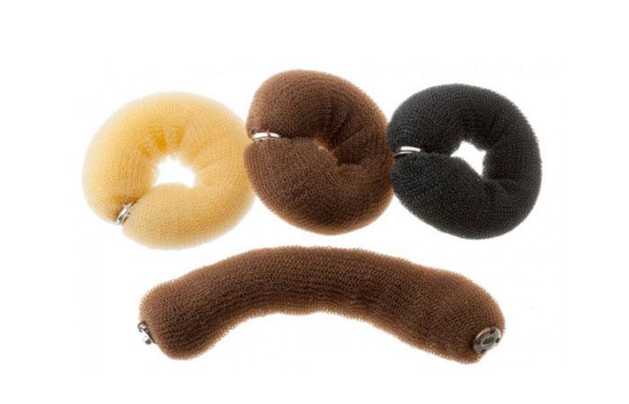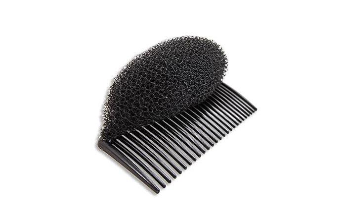 - Гребень-валик. Его можно подобрать под цвет своих волос. Благодаря гребешку валик прочно крепится на голове. Поверх этой накладки размещают предварительно начесанную прядь, фиксируя ее заколкой или резинкой. Получается объемная укладка.