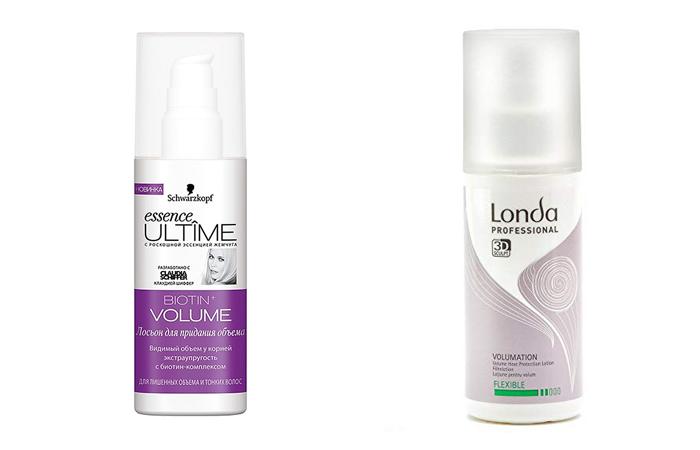 Спрей Sugar Lift от Wella Professionals. Спрей Root Boost от Moroccanoil. Мусс Bodifying Foam от Nioxin. Кондиционер Volumize от System Professional. Лосьон Biotin Volume от Schwarzkopf. Теплозащитный лосьон Volumation от Londa.