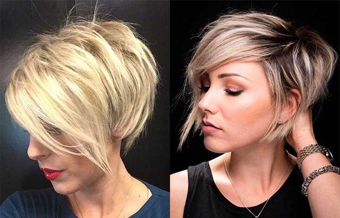 Смелые девушки могут сделать пикси. В сочетании со светлым тоном или рыжим оттенком она смотрится превосходно. Также объем локонам придаст косая, удлиненная или прямая, густая челка до бровей. Вызывающий вариант — укороченные или выбритые пряди на затылке. За счет этого остальная масса волос будет казаться гуще.