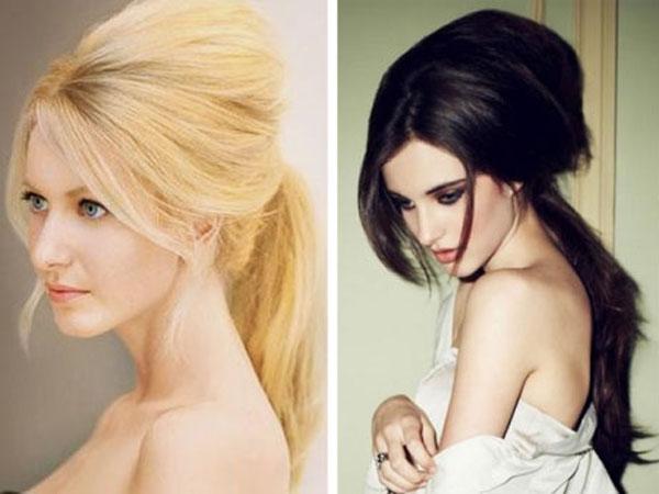 Замаскировать жирные корни этим методом можно, если кончики чистые, а сами волосы достаточно тяжелые и плотные. Хвост с начесом можно сделать за 5 минут. Лучше всего располагать его на середине затылка, чтобы спрятать все грязные корни. Слишком высокий — сильно откроет жирные корни, а низкий — не позволит идеально пригладить прическу. Начес же в передней части головы замаскирует загрязненность прически до хвоста. Выглядит прическа женственно и нежно.