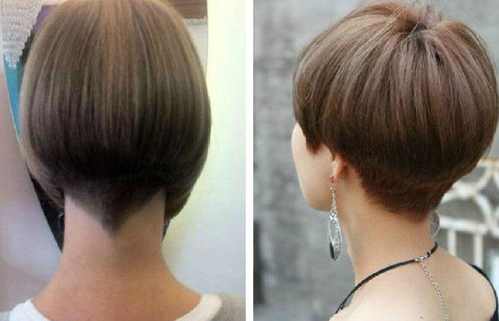 - Затылок стригут максимально коротко. Часто нижние пряди убирают машинкой. При движении вверх длину, угол среза постепенно увеличивают. Это позволяет создать объем.