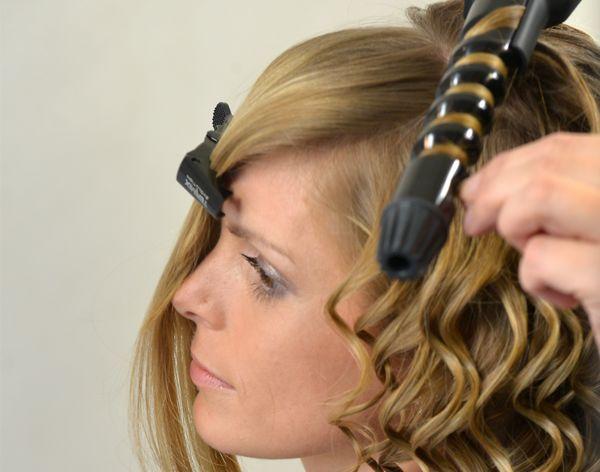 Накрутить с помощью стайлера спиральные кудри можно так: