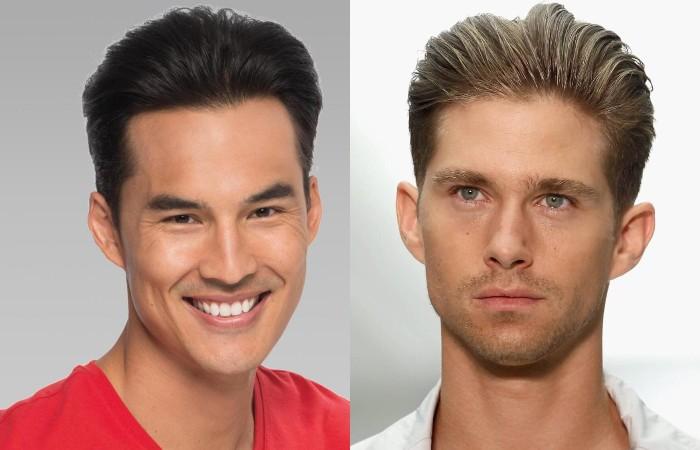 Универсальная форма обладает явными преимуществами — простотой, практичностью, элегантностью. Объемная копна остается на темени, макушке, а боковые зоны, затылок выбриваются или стригутся коротко. Переход длиной части к короткой делается максимально плавным. Сочетание четких, геометрических контуров и мягких удлиненных линий придает элегантный, утонченный вид. В то же время выбритые виски, затылок подчеркивают мужественность, силу. Поэтому стрижка стала популярна у мужчин разных профессий, сфер деятельности.