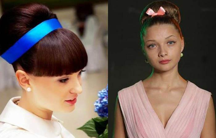 Можно дополнить низко или высоко уложенную «Бабетту» косичками, бантами из волос, лентами или повязками. Эти прически часто выбирают для выпускного или свадьбы, в том числе тематической — в духе ретро.