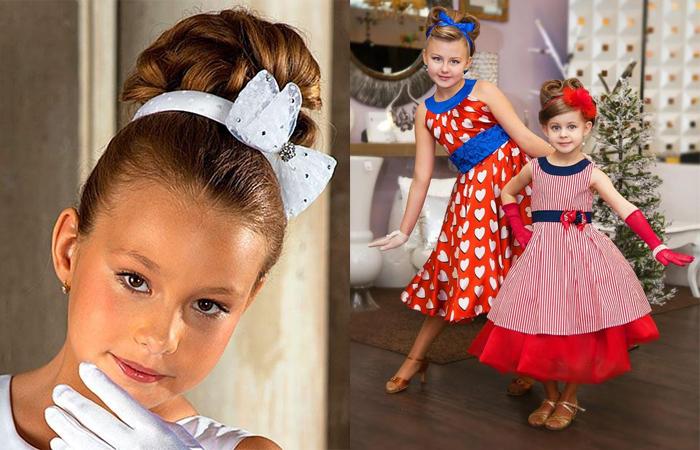 Укладки для маленьких девочек повторяют образы взрослых девушек. Это вариации «Бабетты» или «Трубы мира», всевозможные прически с яркими лентами и т. д. Малышка может посмотреть стилизованные фотки и выбрать то, что ей понравится. Конечно, укладка для юной принцессы должна содержать минимальное количество стайлинга и выполняться без сильного начеса. Задействуйте возможности самой шевелюры, а также активно используйте яркие аксессуары.