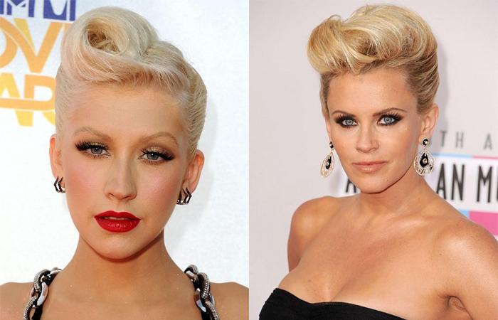 Похожие укладки, но на более длинных волосах, оказались к лицу Кристине Агилере и актрисе Дженни Маккарти.