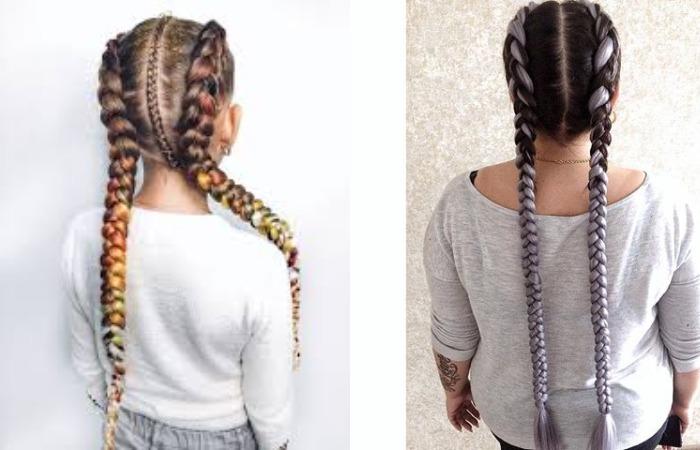 На средней длине можно заплести два симметричных колоска. Чем гуще локоны, тем фактурнее будет выглядеть прическа. Модные цветные окрашивания отлично сочетаются с укладкой. Подходит прическа девушкам, предпочитающих смешивать стилистические направления. Уместна укладка на занятиях спортом, можно выбрать и для прогулки по городу.