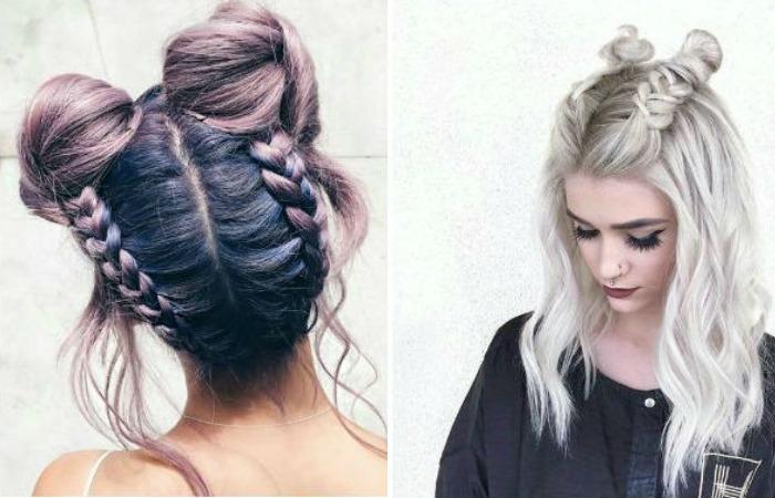 Модные стильные пучки подходят смелым модницам. Сочетаются с яркими оттенками волос и эпатажным макияжем. Рекомендуется только девушкам модельной внешности, прическа создает кукольный образ.