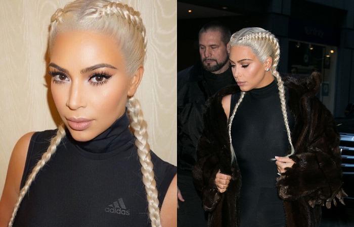 Спортивный шик Ким Кардашьян сочетает с аккуратной укладкой. Прическа стала топовой, многие обращаются к стилистам для создания «Косичек Ким».