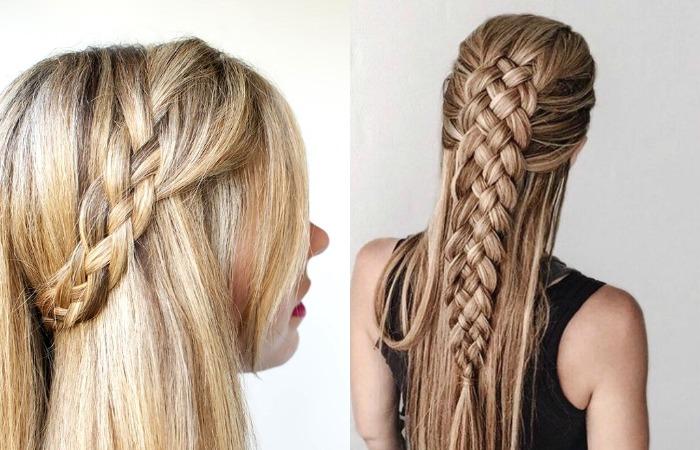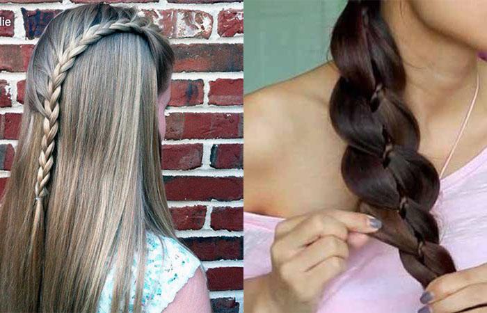 - обладательницы коротких, длинных, редких, а также густых волос создают интересные укладки с центральной, асимметричной и пышной четырехпрядной косой;
