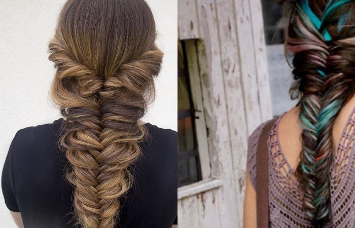 - интересно смотрится на волосах со сложными техниками окрашивания, несколько оттенков, чередующихся в плетении, создает оригинальный узор из прядей;