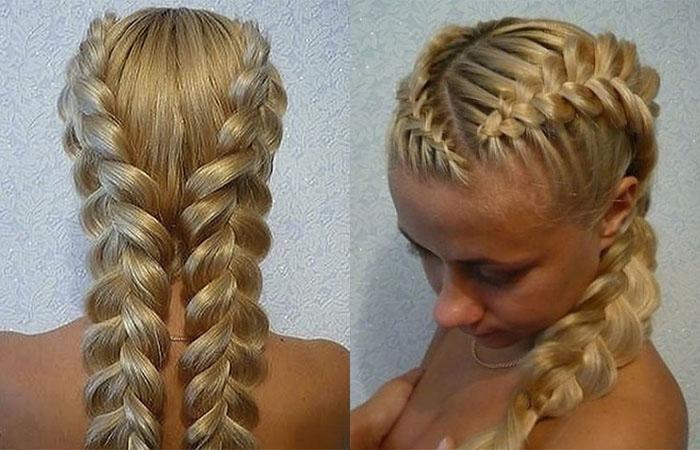Цвет волос не имеет значения, но сложные косы все же лучше смотрятся с мелированием, а также градиентными омбре, шатуш. Благодаря чередованию прядок коса выглядит как искусный узор.