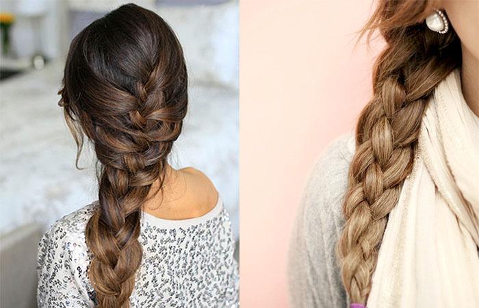 - гладкие, лаконичные косы подходят девушкам модельных параметров, барышням с формами лучше остановиться на асимметричных вариантах с пышной густой косой;
