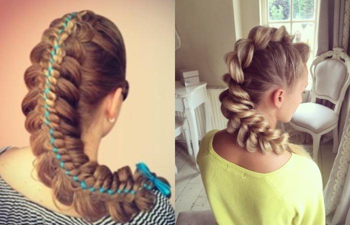 Косы — это традиционный способ укладывания волос. Красавицы по всему миру заплетали локоны в длинные ниспадающие плетения. В Китае создавали сложные композиции вместе с шиньонами, накладными пучками. В Мексике вплетали ленты и украшали яркими цветами. Сочетание с лентой и натолкнуло на эксперименты с введением дополнительной пряди. Добавление нового элемента позволило преобразить прическу, придать классике современные нотки.