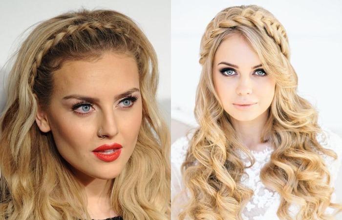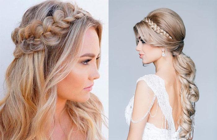 Распущенные волосы с ободком из косы.