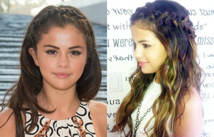 Селена Гомес выбирает модель косы вокруг головы с распущенными прядями.