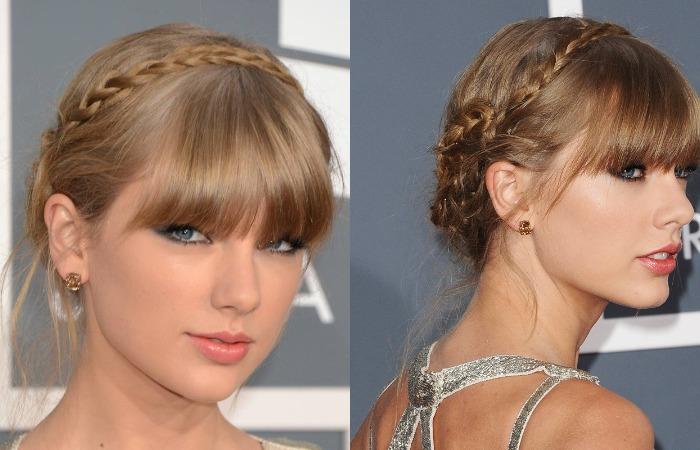 Тейлор Свифт выбрала для одной из церемоний тонкую косичку ободок и удлиненную челку. Загадочный и нежный образ не остался без внимания папарацци.