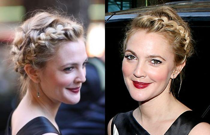 Дрю Берримор также выходила в свет с аккуратно собранной косой.
