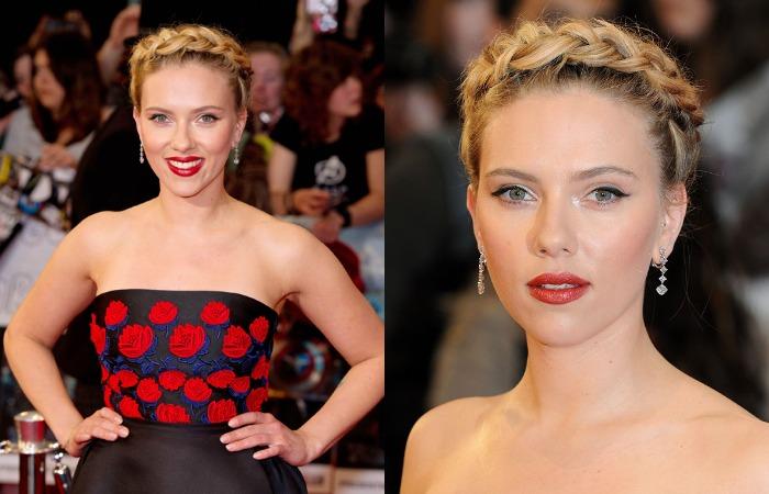 Пышные формы Скарлетт Йоханссон подчеркнула лаконичной укладкой, акцентировав внимание на линии шеи и области декольте.