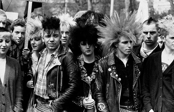 Помимо рваных джинсов, изображений черепов на одежде, курток-косух панки выделялись волосами ярких цветов, зачастую уложенных в виде ирокеза. Для этого молодежь часто сбривала шевелюру, оставляя полосу длинных прядей ото лба к затылку. Позднее эту тенденцию подхватили готы и представители иных направлений.