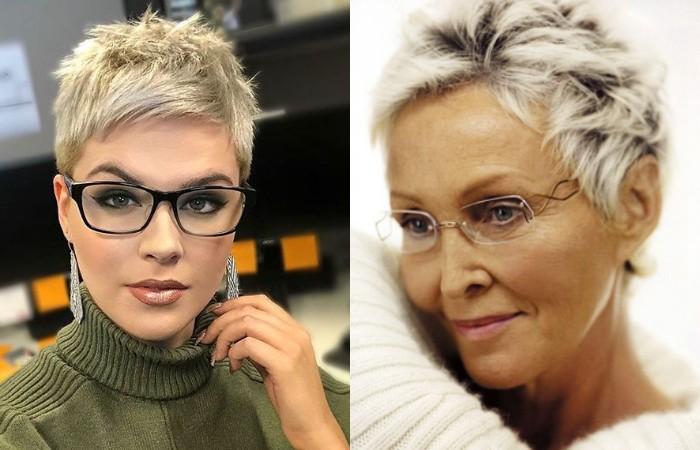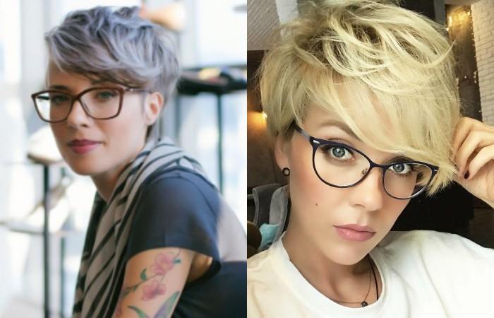 Ультракороткие стрижки станут украшением женщин разных возрастных групп, практичные укладки позволяют выглядеть стильно, креативно каждый день. Открытая модель акцентирует внимание на лице, поэтому стоит выбирать аккуратные модели очков. Роскошно смотрятся классические прямоугольные или ретро экземпляры с вытянутыми углами к вискам.