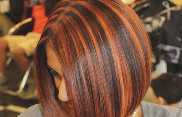 Американское. Идеально выглядит на брюнетках, подходит и шатенке, потому что дает возможность обладательницам коричневых и черных локонов разнообразить прическу яркими акцентами, чаще всего рыжими, медными, красными. Для этого берут от 3-х до 5 тонов.