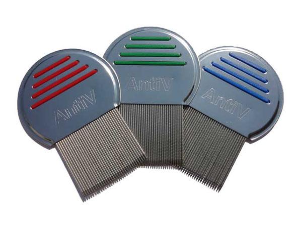 Высокой эффективностью обладает изделие с металлическими зубьями. Материал позволяет создавать инструменты с большой длиной, высокой частотой зубьев (порядка 0,9 мм). Дополнительные насечки на зубцах обеспечивают повреждение кладки, сокращая количество «свежих» особей. Металлический гребень способствует качественной проработке пораженных участков. Благодаря недельному курсу с 3–5 процедурами в день получится достичь устранения проблемы. Популярностью пользуются изделия AntiV, NitFree, LiceGuard, Педикулен.