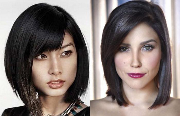Овальное вытянутое или треугольное лицо уравновесит стрижка, закрывающая мочки ушей. Удлинение передних прядей недопустимо. Косую челку выполняют укороченной. Длина до скул считается оптимальной.
