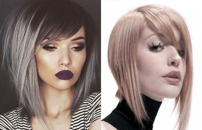 Прическа с удлиненными передними прядями подходит обладателям правильного овала, округлого или компактного квадратного лица. Вариант заузит, удлинит форму. Косая челка усилит это свойство. Прическа выглядит стильно и незаурядно. Стрижка отлично смотрится в любом однотонном цвете. Колорирование отдельных прядей — модная нотка, вносящая разнообразие.