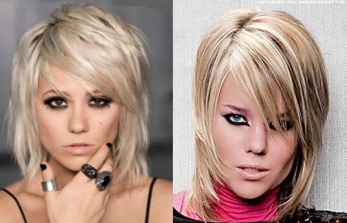 Стрижки с градуировкой, лесенкой или каскадом короткой, средней длины идеальны для зрелых женщин. Присутствие косых передних прядей поможет дополнительно затенить возрастные изменения на лице. Молодые девушки с помощью рваного контура подчеркнут дерзость. Длинная косая челка скроет возрастное несовершенство кожи.