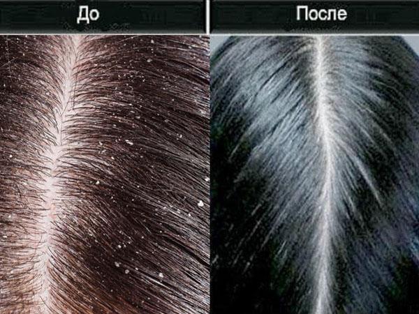 - визуальное уменьшение количества перхотных чешуек в волосах;