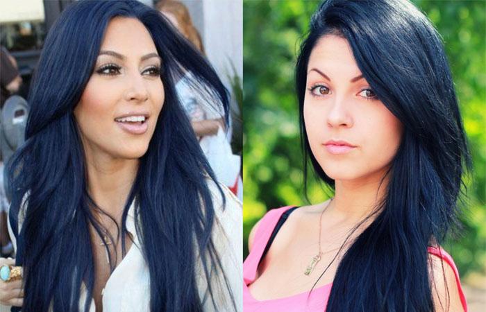 - Черные локоны с синим отливом гармонируют с голубыми глазами. Правда, такой оттенок смотрится совсем ненатурально, что прибавляет образу легкомысленности.
